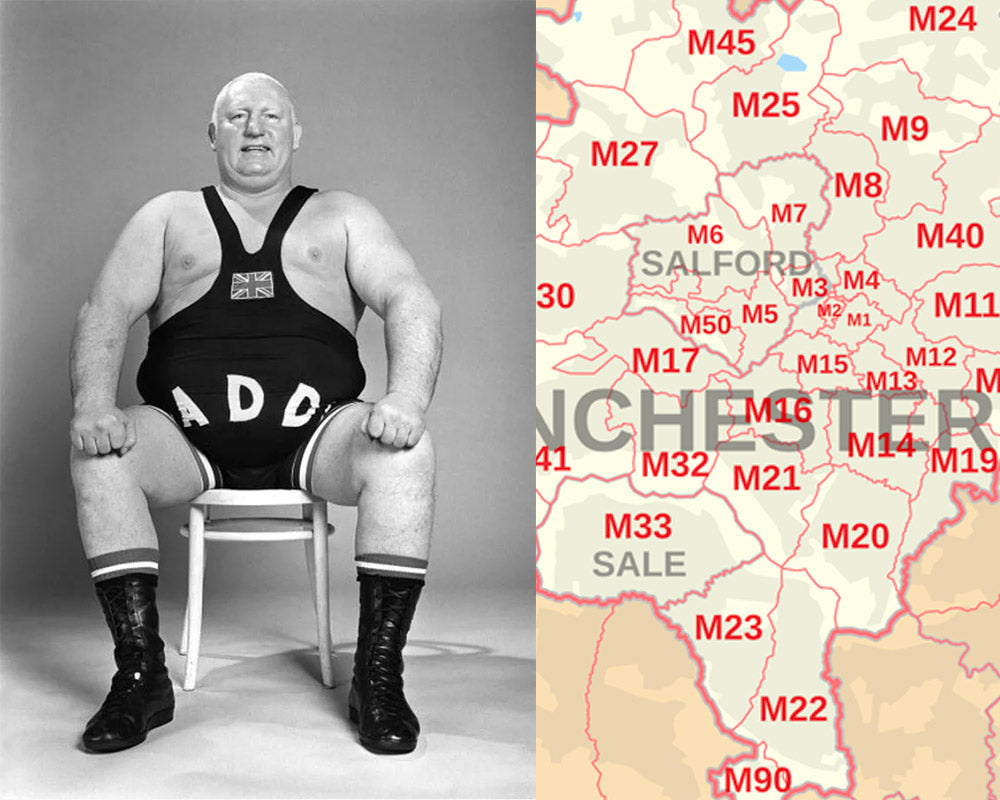 The post codes in Manchester where we hail from. Known as Cottonopolis, Manchester was the centre of the UK's cotton industry. We live there and we're back producing heavyweight cotton sweats entirely made in the UK.